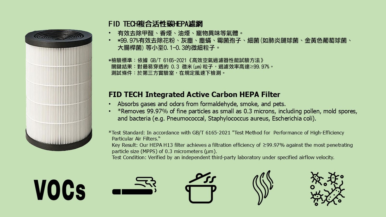 Integrated Active Carbon HEPA Filter is 99.97% efficient at filtering particulates.