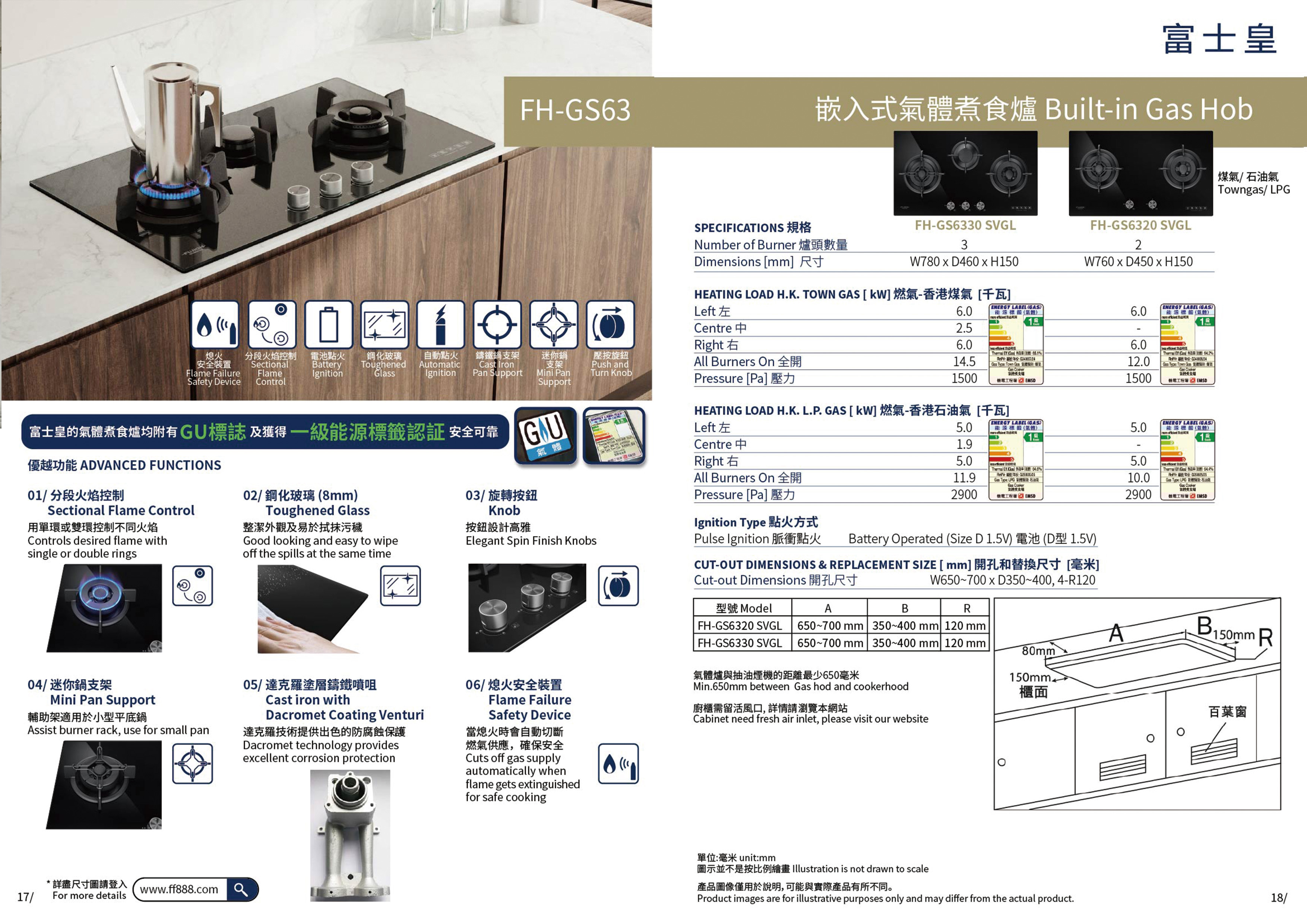 [Display model] 富士皇 嵌入式氣體煮食爐 FH-GS6320 SVGL (石油氣)